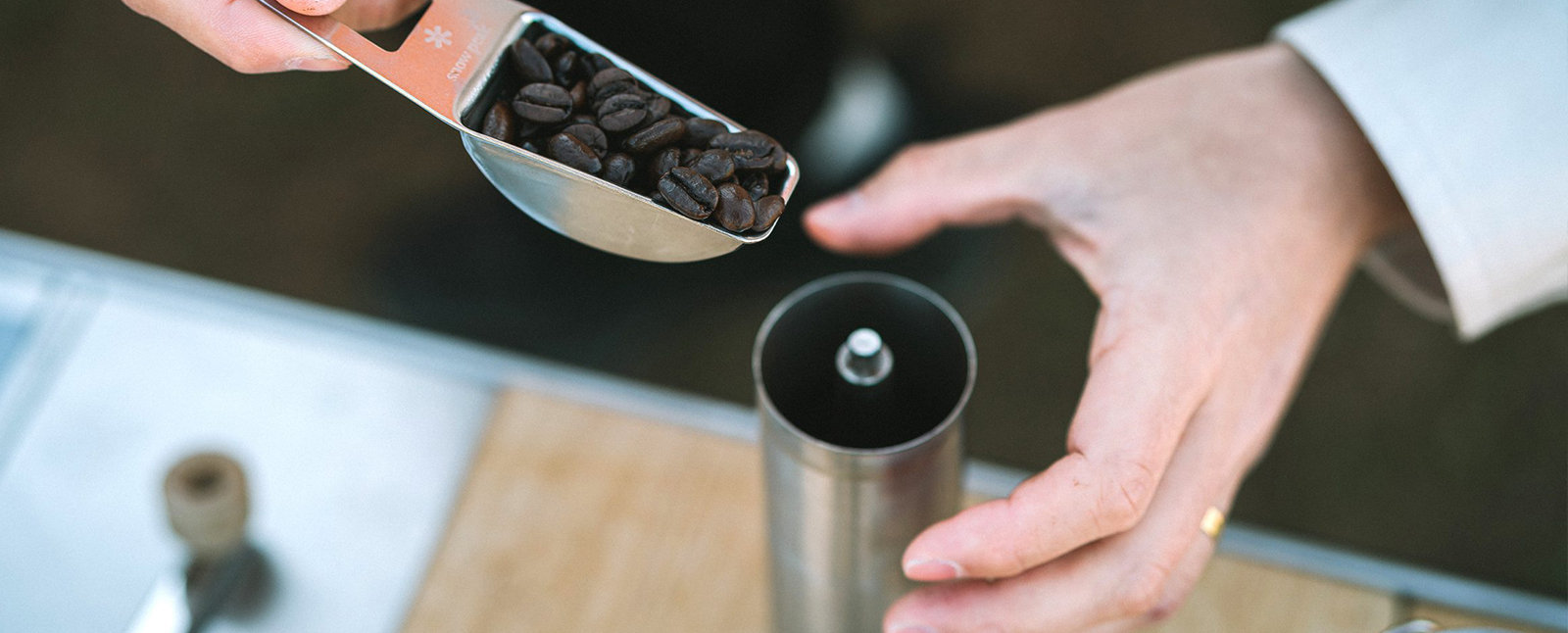 豆を量るのに最適な軽量スプーンや、焚火台型のドリッパー、大容量のケトルなど、お好みのギアをお選びください。