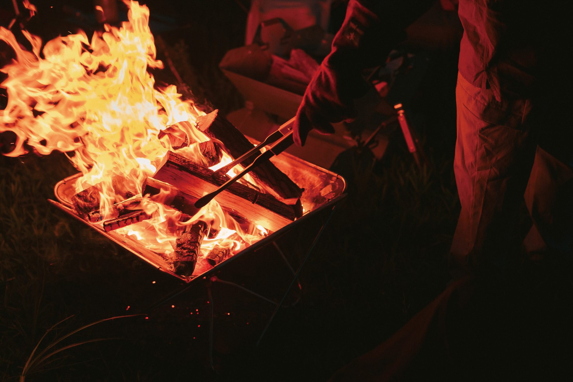 地面で直接焚火をすることが禁止されているキャンプ場が多く、「焚火台」の用意が必要となります。